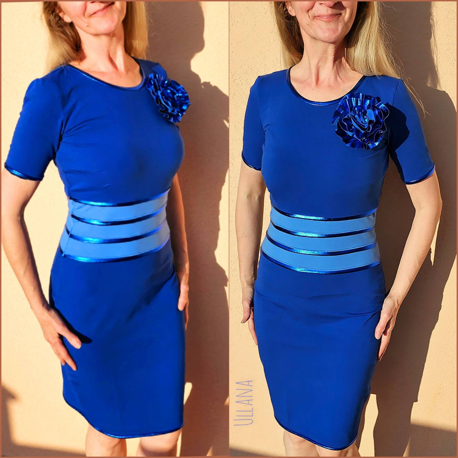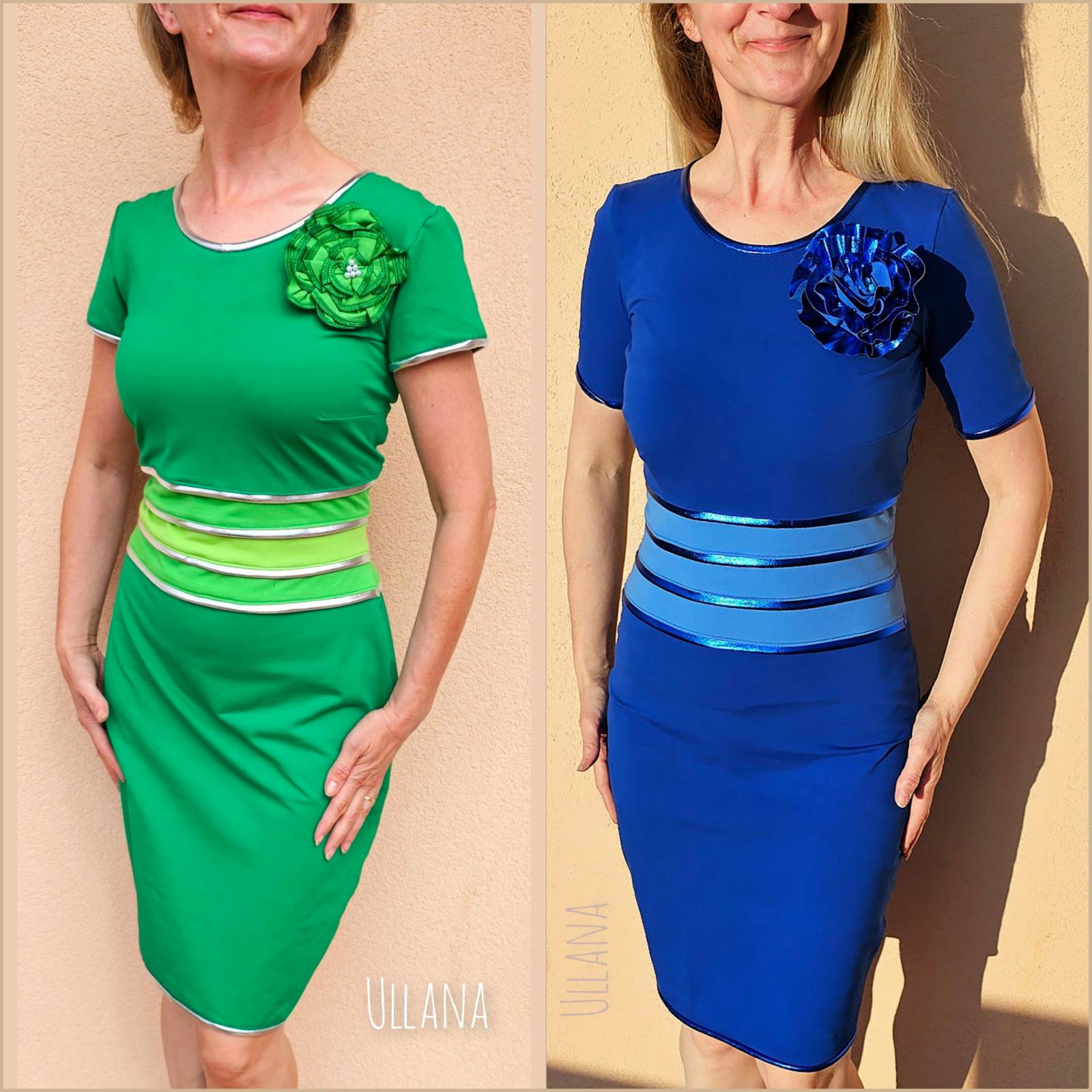 Elegantna oblekica za posebne priložnosti. Ko želiš še posebej zasijati. Telirana. Osrednji del z všitki s kovinskim leskom, prav take so obrobe. Roža je izdelana v obliki broške in je snemljiva. Izdela se jo v klasičnih velikostih ali po meri.