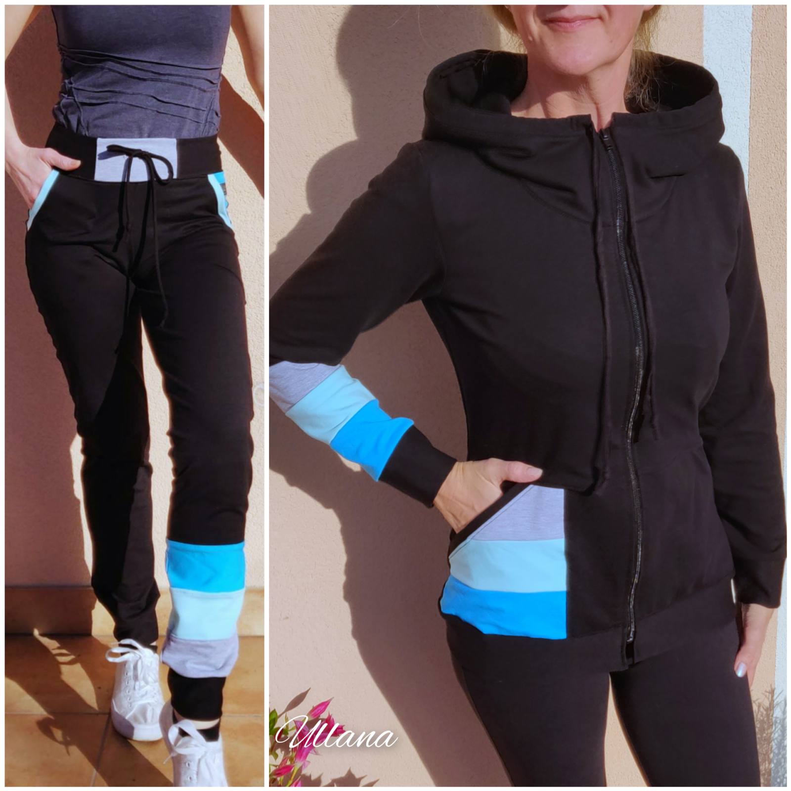 Udoben komplet pulover s kapuco + hlače. Udoben in prijeten komplet za prosti čas. Hoodie se zapenja z zadrgo in ima dva žepa, prav tako imajo hlače po dva žepa.